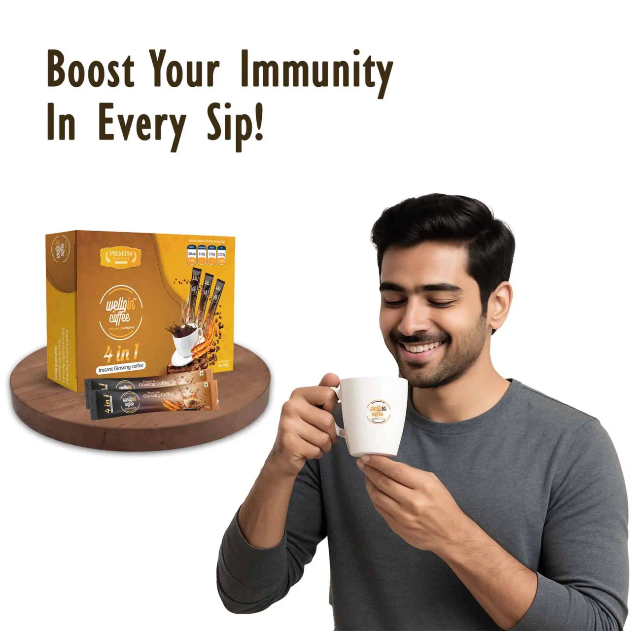 Wellgin Coffee Premium Ginseng Coffee – 10 Sachets Pack is ideal for first-time users or those looking for a short-term wellness boost. It is made with premium instant coffee, authentic Korean Ginseng, natural brown sugar, and vegan creamer-clean, plant-based ingredients crafted for smooth, balanced energy. Each sachet supports stress relief, stamina, focus, mood, immunity, and sexual wellness for both men and women, without harsh stimulants or crashes. Korean Ginseng’s adaptogenic properties may improve mental clarity, memory, and physical performance with consistent use. Easy to prepare, simply mix one 10g sachet with about 150ml of hot water or milk. A convenient starter pack to experience clean energy and daily vitality.